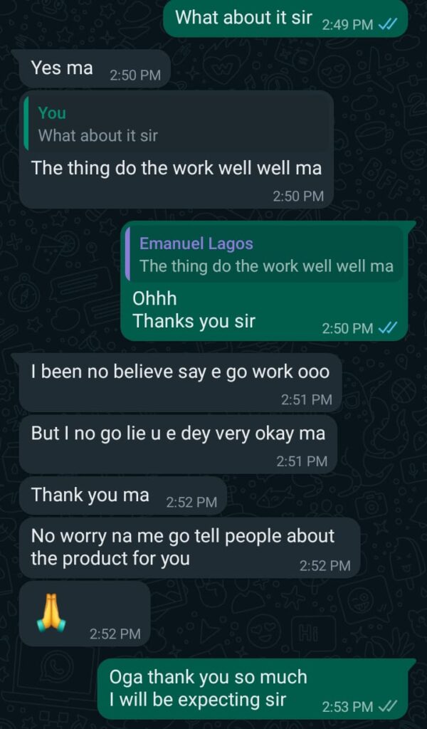 But today I’m a living witness, I used it and confirmed it and I’ve vowed to help people who are having such problems to get over it.